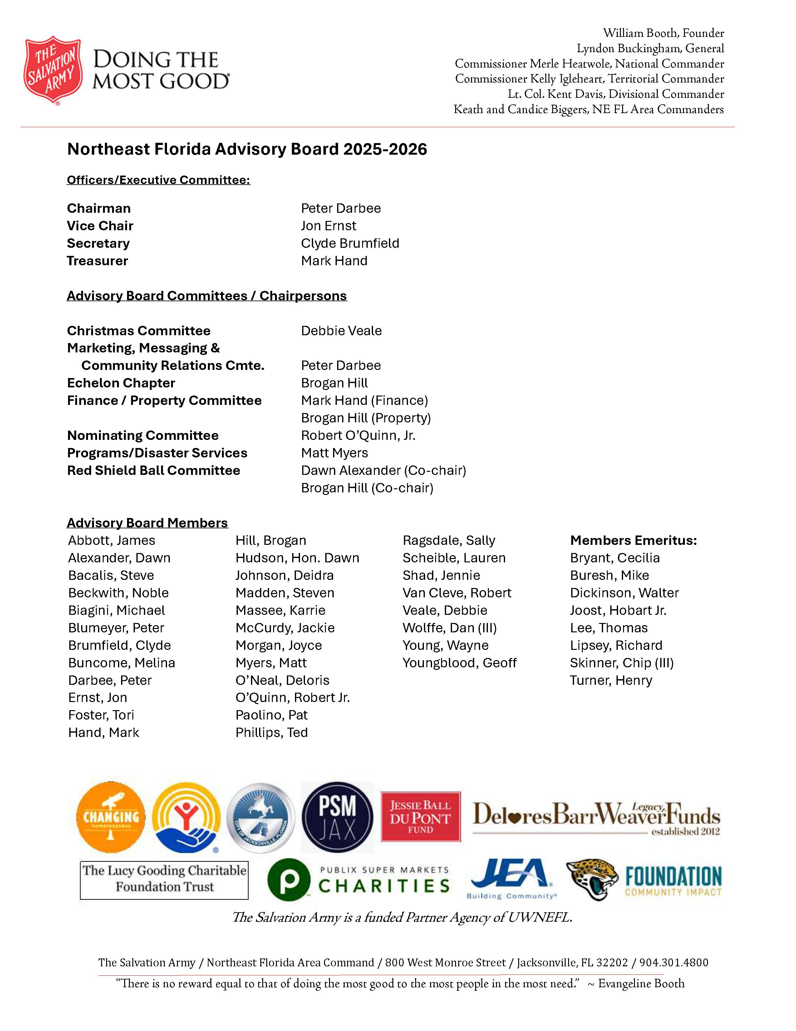 The Northeast Florida Advisory Board consists of a wide variety of hard-working men and women who share the vision to transform and restore lives in the city of Jacksonville.